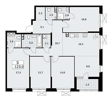 Купить 5к квартиру 169 м² в ЖК Дзен-кварталы