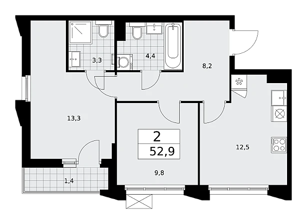 Продаётся 2-комнатная квартира, площадью 52,9 кв. м на 3-м этаже дома комфорт-класса в ЖК "Деснаречье". Квартира с функциональной планировкой: большие окна, высота потолка 2,95 м, балкон, мастер-спальня.