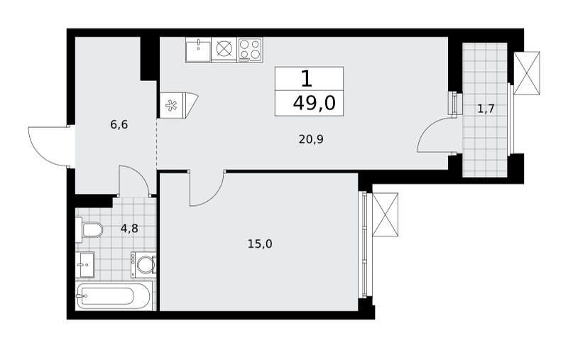 Продаётся 1-комнатная квартира, площадью 49,0 кв. м на 17-м этаже дома комфорт-класса в ЖК "Деснаречье". Квартира с функциональной планировкой: большие окна, высота потолка 2,95 м, балкон.