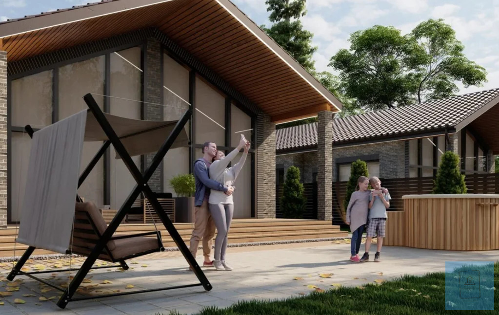 Кровля - металлочерепица, окна - тройные стеклопакеты, в доме просторная гостинная-столовая с выходом на террасу, 3 спальни, 3 с/у, гардеробная. Дом частично меблирован, установлена сантехника.