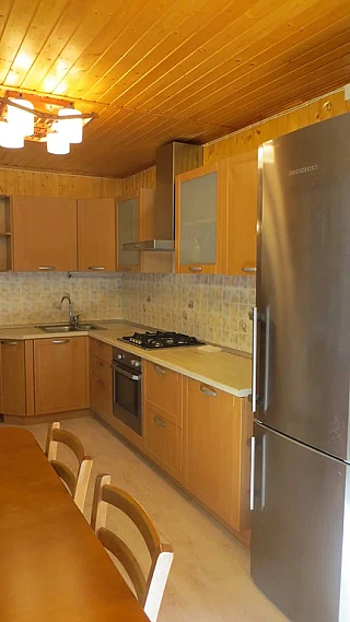 ОТДЕЛКА: ламинат и плитка (санузлы, прихожка, бойлерная). Обои под покраску. Натяжные потолки. Лестница деревянная, окрашенная.