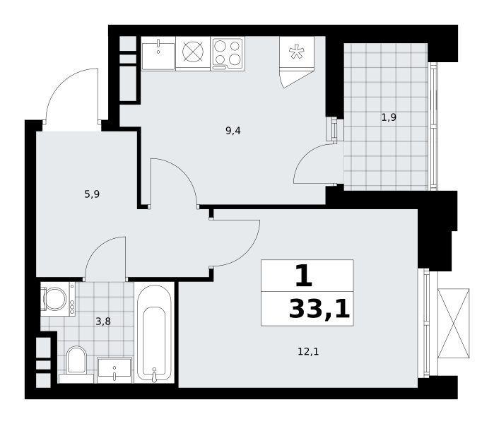 Продаётся 1-комнатная квартира, площадью 33,1 кв. м на 11-м этаже дома комфорт-класса в ЖК "Прокшино". Квартира с функциональной планировкой: большие окна, высота потолка 2,95 м, балкон.