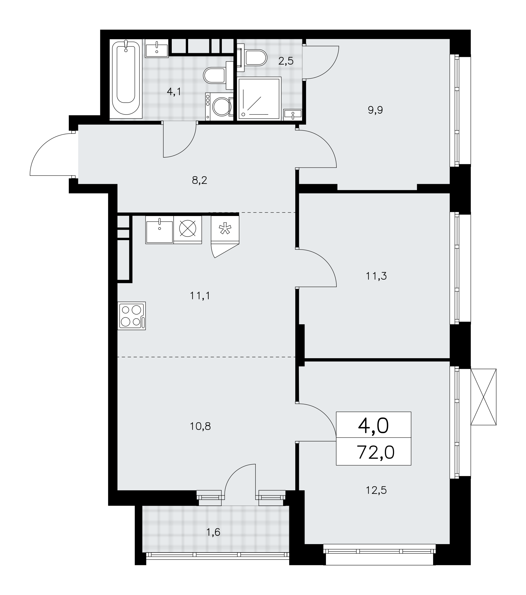 Продаётся 4-комнатная квартира, площадью 72,0 кв. м на 11-м этаже дома комфорт-класса в ЖК "Прокшино". Квартира с функциональной планировкой: большие окна, высота потолка 2,99 м, балкон, мастер-спальня.