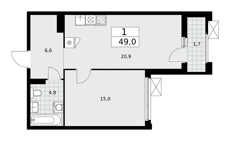 Продаётся 1-комнатная квартира, площадью 49,0 кв. м на 17-м этаже дома комфорт-класса в ЖК "Деснаречье". Квартира с функциональной планировкой: большие окна, высота потолка 2,95 м, балкон.