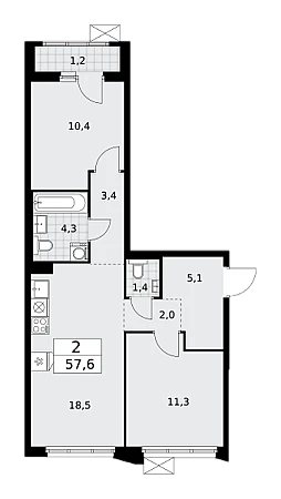 Продаётся 2-комнатная квартира, площадью 57,6 кв. м на 6-м этаже дома комфорт-класса в ЖК "Деснаречье". Квартира с функциональной планировкой: большие окна, высота потолка 2,95 м, балкон.