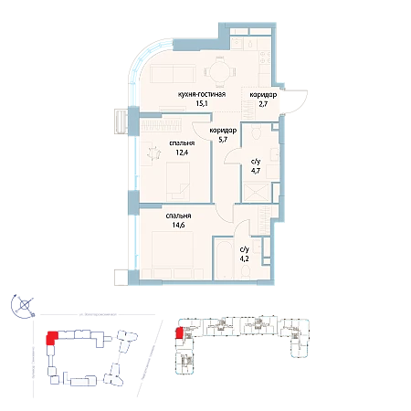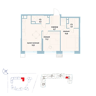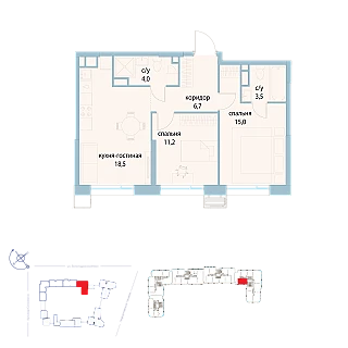 Артикул квартиры по базе застройщика 58К-4.3-516.