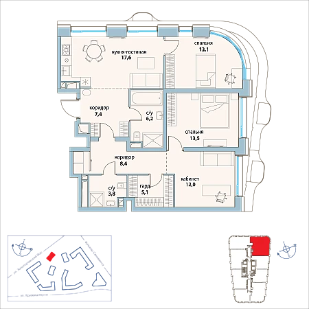 Купить 3к квартиру 78 м² в ЖК "Дом на Зорге"
