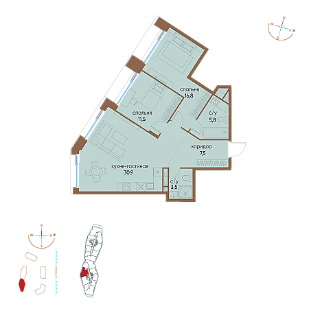 На территории дома будут благоустроены общий и приватный (доступный только жителям) дворы. Дизайн каждой функциональной зоны уникален, а вместе они подчёркивают благородный архитектурный стиль здания. В основе цветовых решений – «отражение» фасадов, мягкие природные оттенки. (AQID02221155)