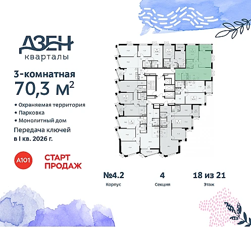 Купить 3к квартиру 70 м² в ЖК "Дзен-кварталы"