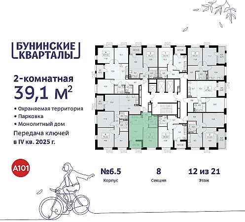 Купить 2к квартиру 39 м² в ЖК "Бунинские кварталы"