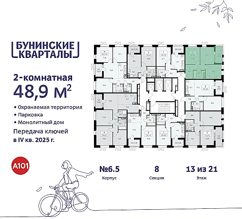 Квартира находится в корпусе 6.5. Дом монолитный, одноподъездный, высотой 21 этаж. На этаже 9 квартир. В подъезде 1 пассажирский и 2 грузовых лифта. Начало строительства - 3 квартал 2023 года. Окончание строительства - 4 квартал 2025 года. Оформление сделки по договору долевого участия.