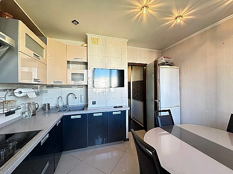 3-комн. квартира с европланировкой и отделкой в ЖК "Родные кварталы" на 9 этаже. Общая площадь: 59.5 кв.м., жилая: 34 кв.м., общая площадь гостиной-столовой с кухонной зоной: 23.8 кв.м. Европланировка, за счет большой площади кухни-гостиной квартира выглядит просторной и очень удобна для жизни. Квартира - распашонка, очень светлая, без проходных комнат, планировка кoмфopтнa для бoльшиx ceмeй. В квартире один балкон, один совмещенный и один раздельный санузел. Высота потолков 2.9 м.