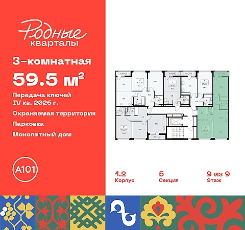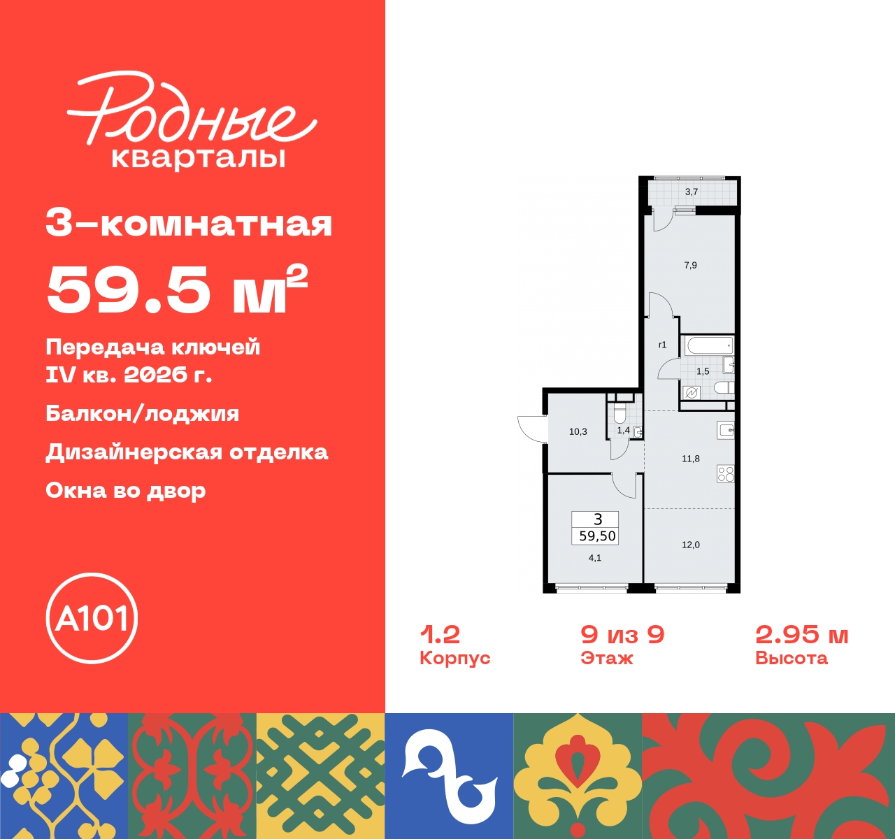 Купить 3к квартиру 59 м² в ЖК "Родные кварталы"