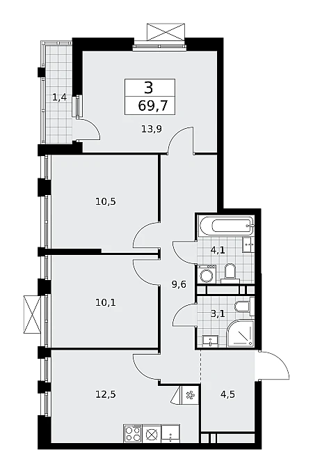 3-комн. квартира бизнес-класса с европланировкой и отделкой в ЖК "Дзен-кварталы" на 4 этаже. Общая площадь: 88.4 кв.м., жилая: 41.1 кв.м., суммарная площадь гостиной-столовой с кухонной зоной: 28.3 кв.м. Европейская планировка, площадь комнат позволяет разместить в них все необходимое, а в просторной кухне-гостиной удобно как готовить, так и отдыхать. Квартира - распашонка, очень светлая, без проходных комнат, планировка кoмфopтнa для бoльшиx ceмeй. В квартире один балкон, два совмещенных санузла. Высота потолков 3.1 м.