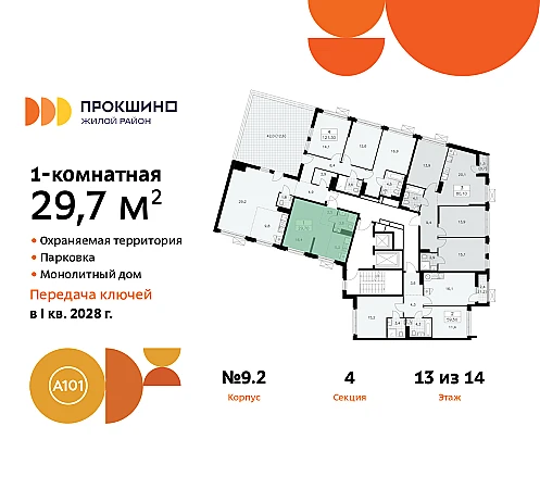 Купить 1к квартиру 29 м² в ЖК "Прокшино"