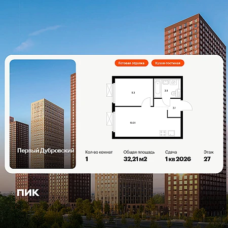 Квартира располагается на 18 этаже 32-этажного дома в ЖК BeLuck Коломенское.