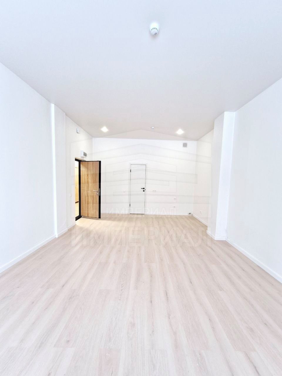 На стенах поклеены обои под покраску, на полу постелен ламинат с плинтусами и откосами. Есть вытяжная вентиляция в санузле и на кухне, выходы хв/гв, место под раковину на кухне. Кроме того, в помещениях уже есть выключатели освещения, розетки для бытовой техники и роутера, а также сделаны закладные для оптоволокна для интернета.