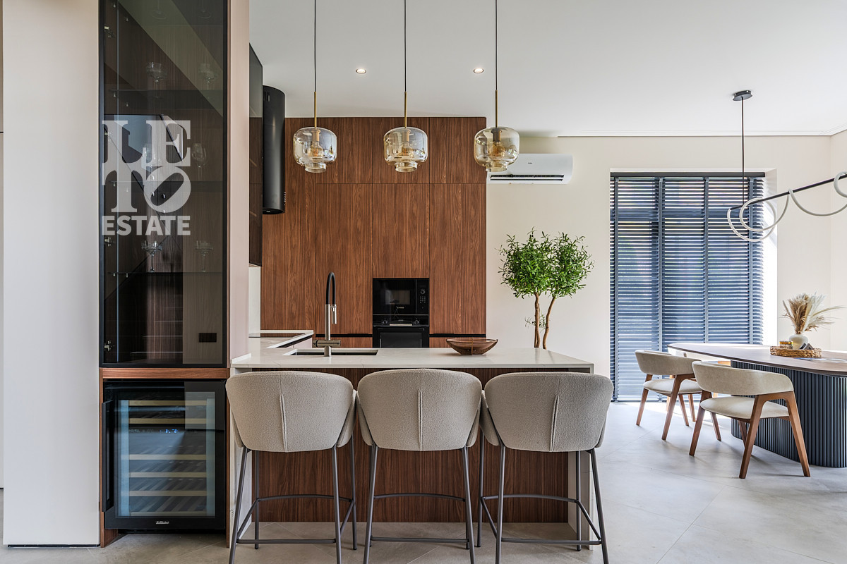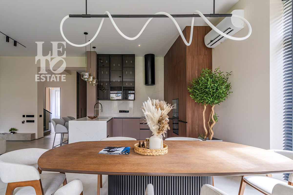 Новый современный дом под ключ, выполненный по авторскому проекту. Дом построен из керамоблоков с облицовкой из фиброцементных панелей. В доме установлена современная инженерия с использованием функций Умного дома.