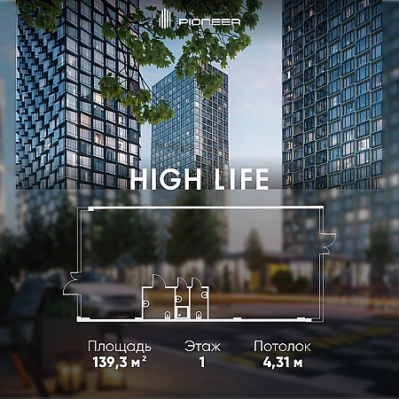 Помещение площадью 139,3 кв. м. в комплексе небоскребов HIGH LIFE. В шаговой доступности от м. Павелецкая и Садового кольца. Отдельный вход. Витринное остекление 4,5 м.