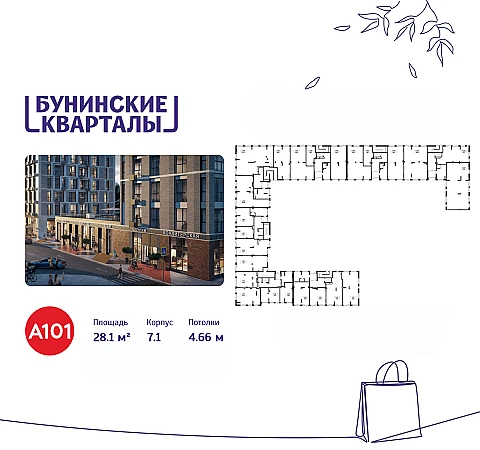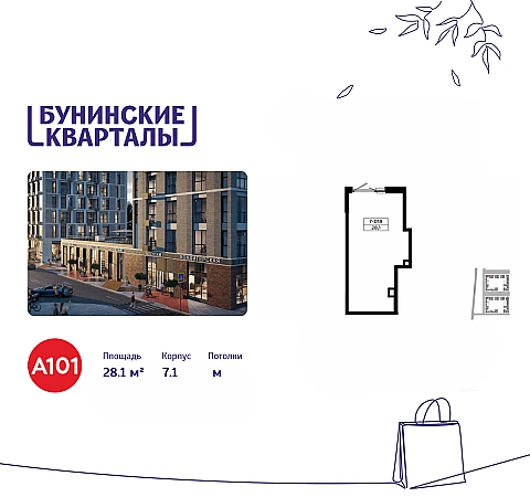 Сдается помещение площадью 28.10. на 1-м этаже ЖК «Бунинские кварталы».