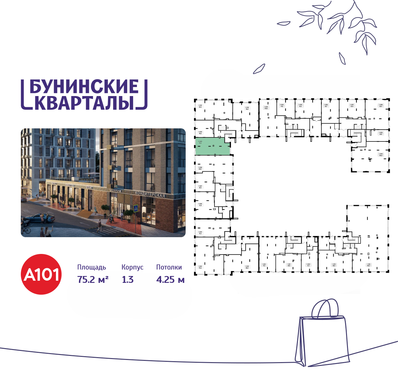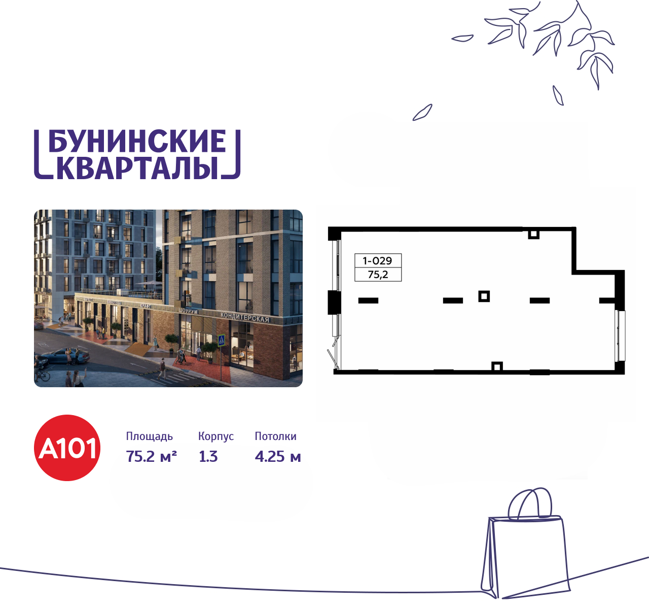 Снять торговое помещение 75 м² в ЖК Бунинские кварталы