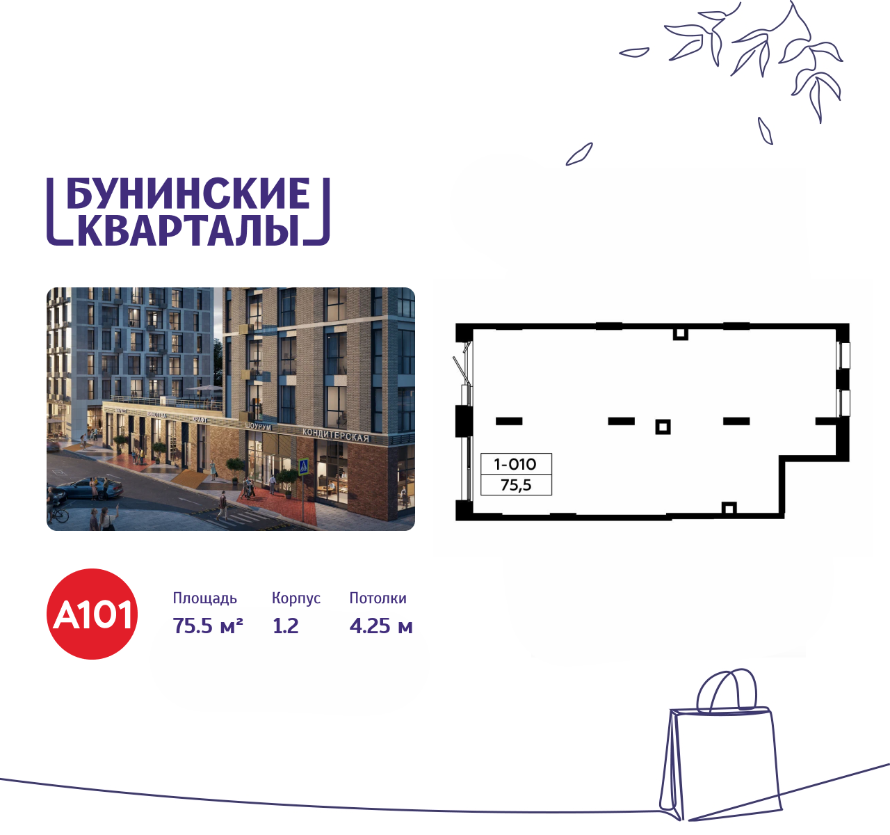 Снять торговое помещение 75 м² в ЖК Бунинские кварталы