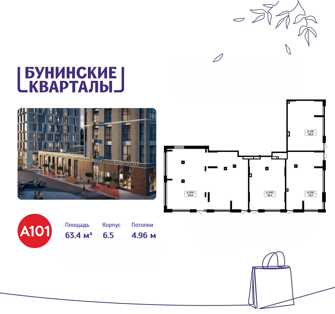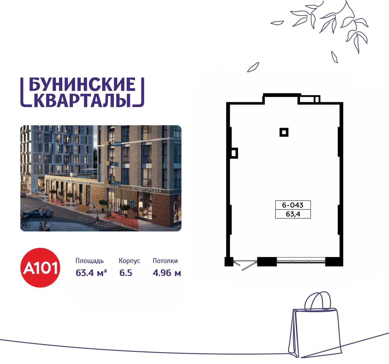 Снять торговое помещение 63 м² в ЖК Бунинские кварталы