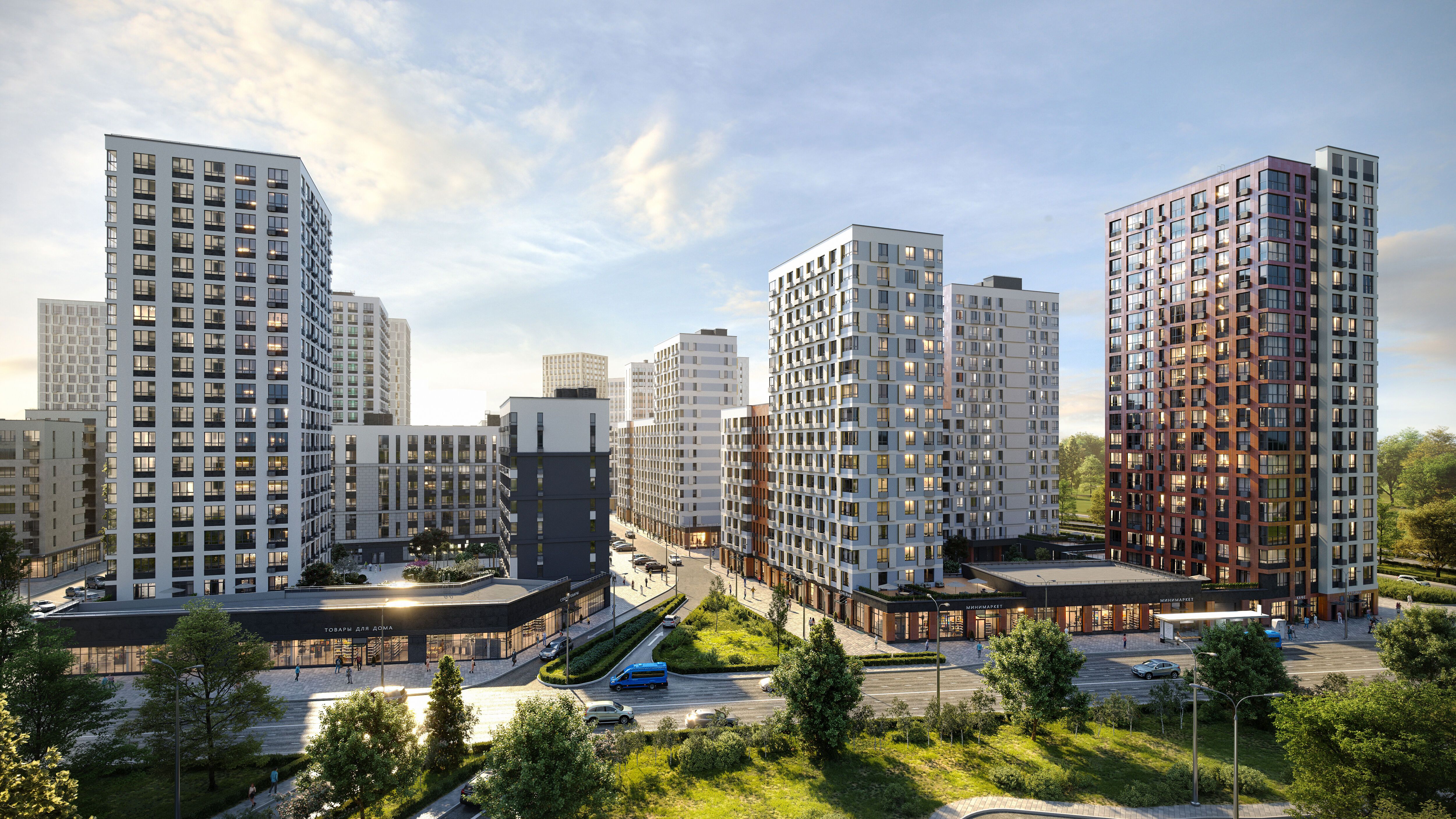 По соседству расположены заселённые районы с уже действующей коммерческой инфраструктурой, школами и детскими садами, в 5 минутах на автомобиле — гипермаркет «Глобус».