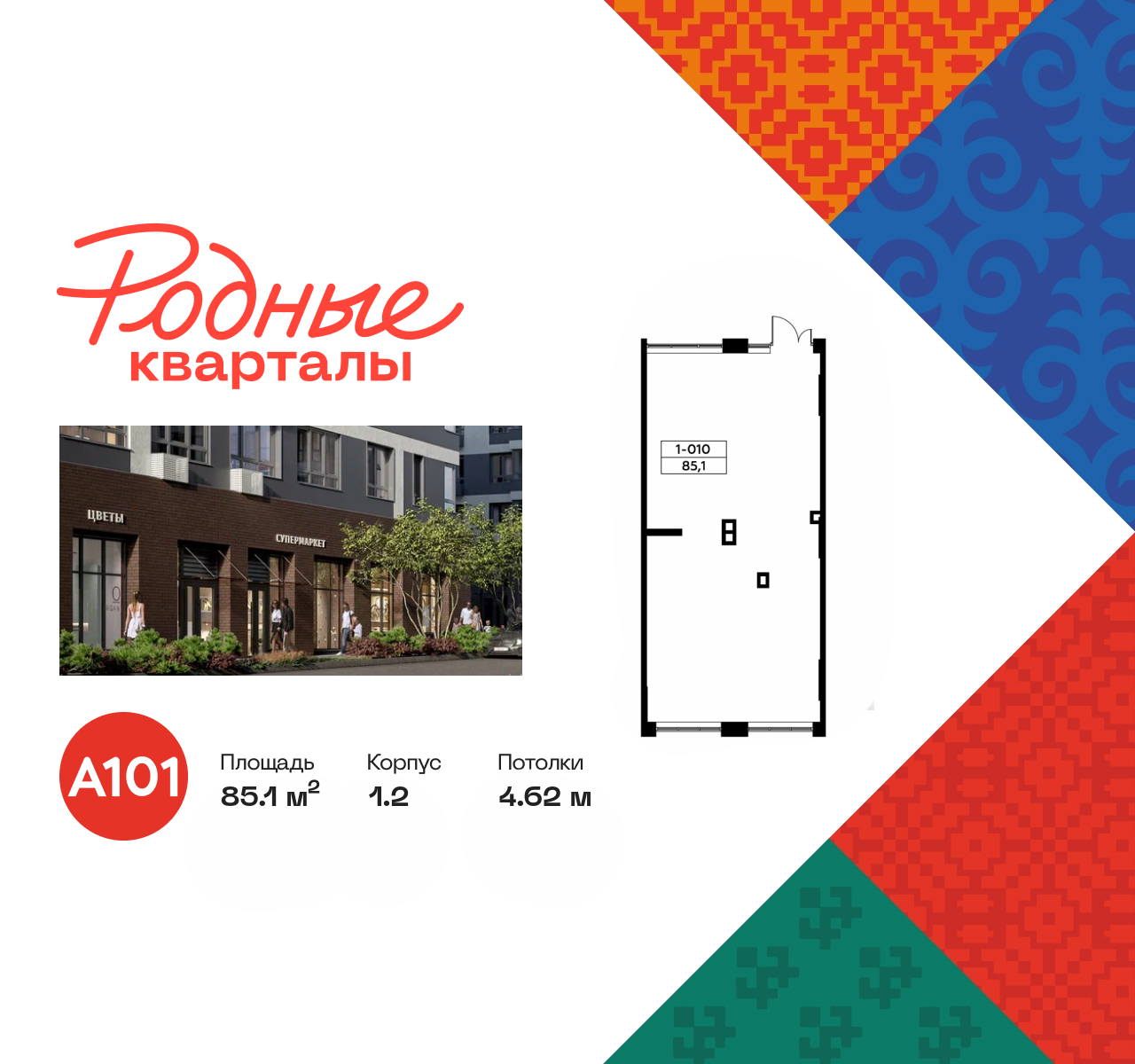 Купить торговое помещение 85 м² в ЖК Родные кварталы