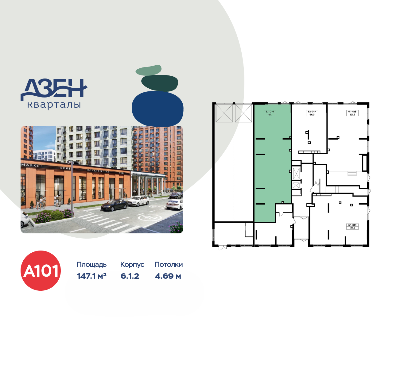 Продается торговое помещение площадью 147.10. на 1-м этаже ЖК «Дзен-кварталы».