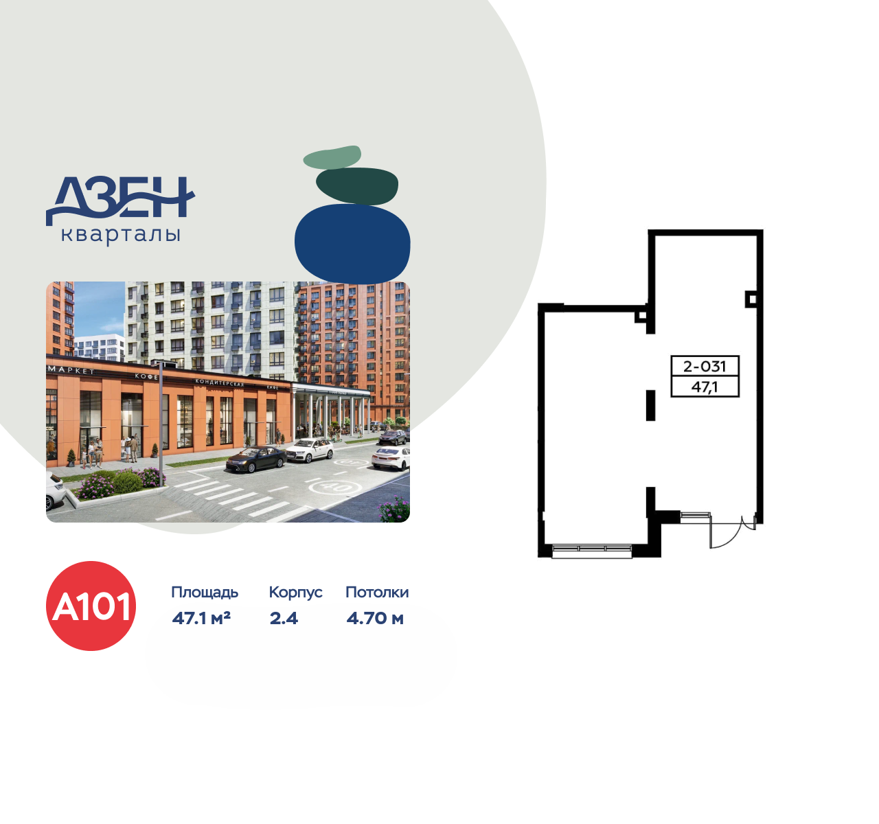 Сдается помещение площадью 47.10. на 1-м этаже ЖК «Дзен-кварталы».