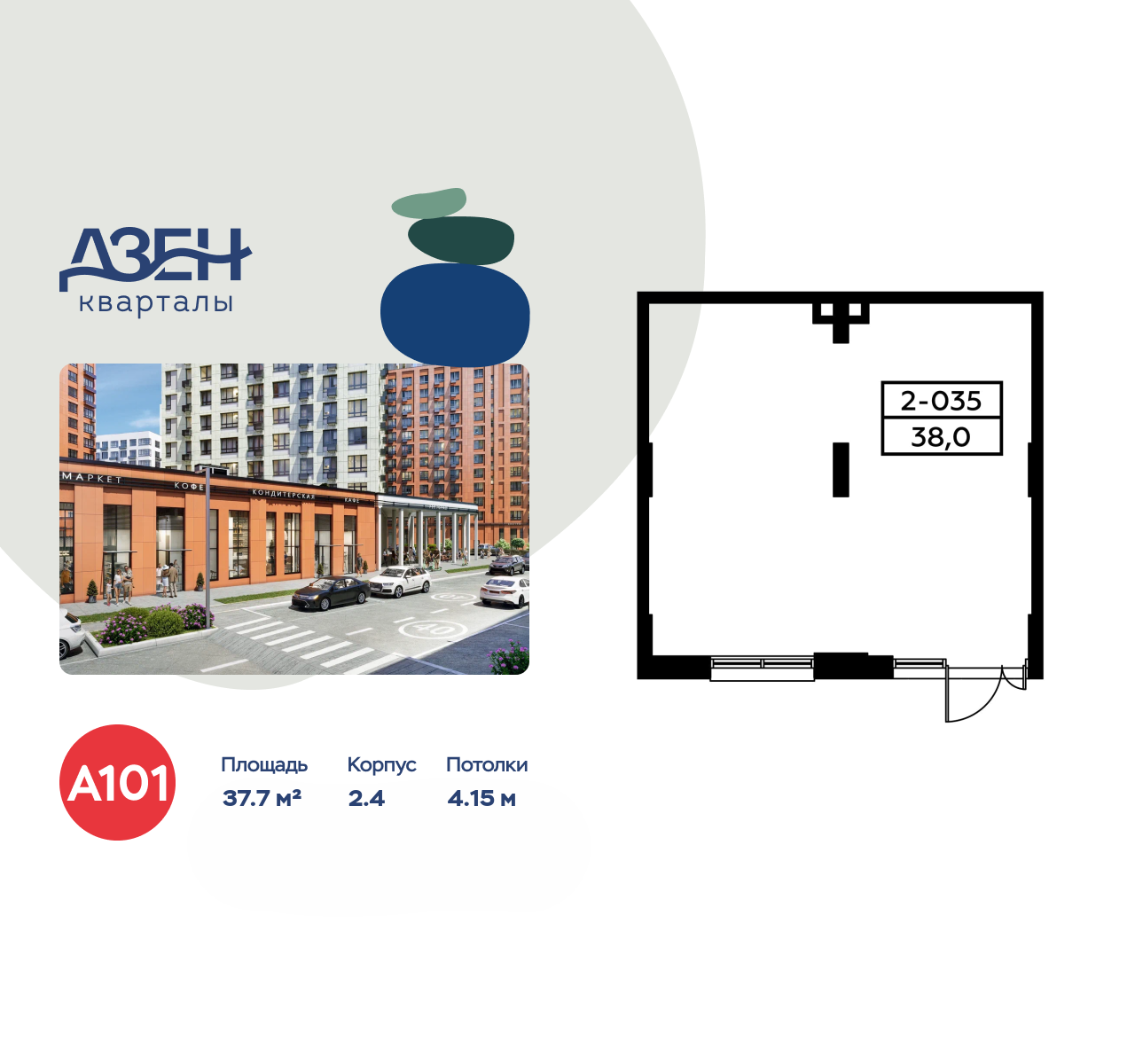Сдается помещение площадью 37.70. на 1-м этаже ЖК «Дзен-кварталы».