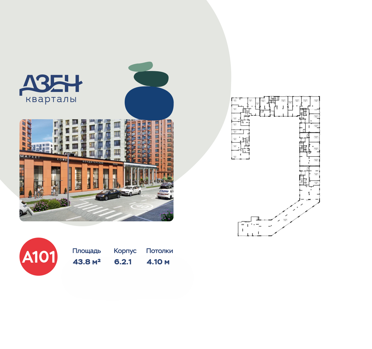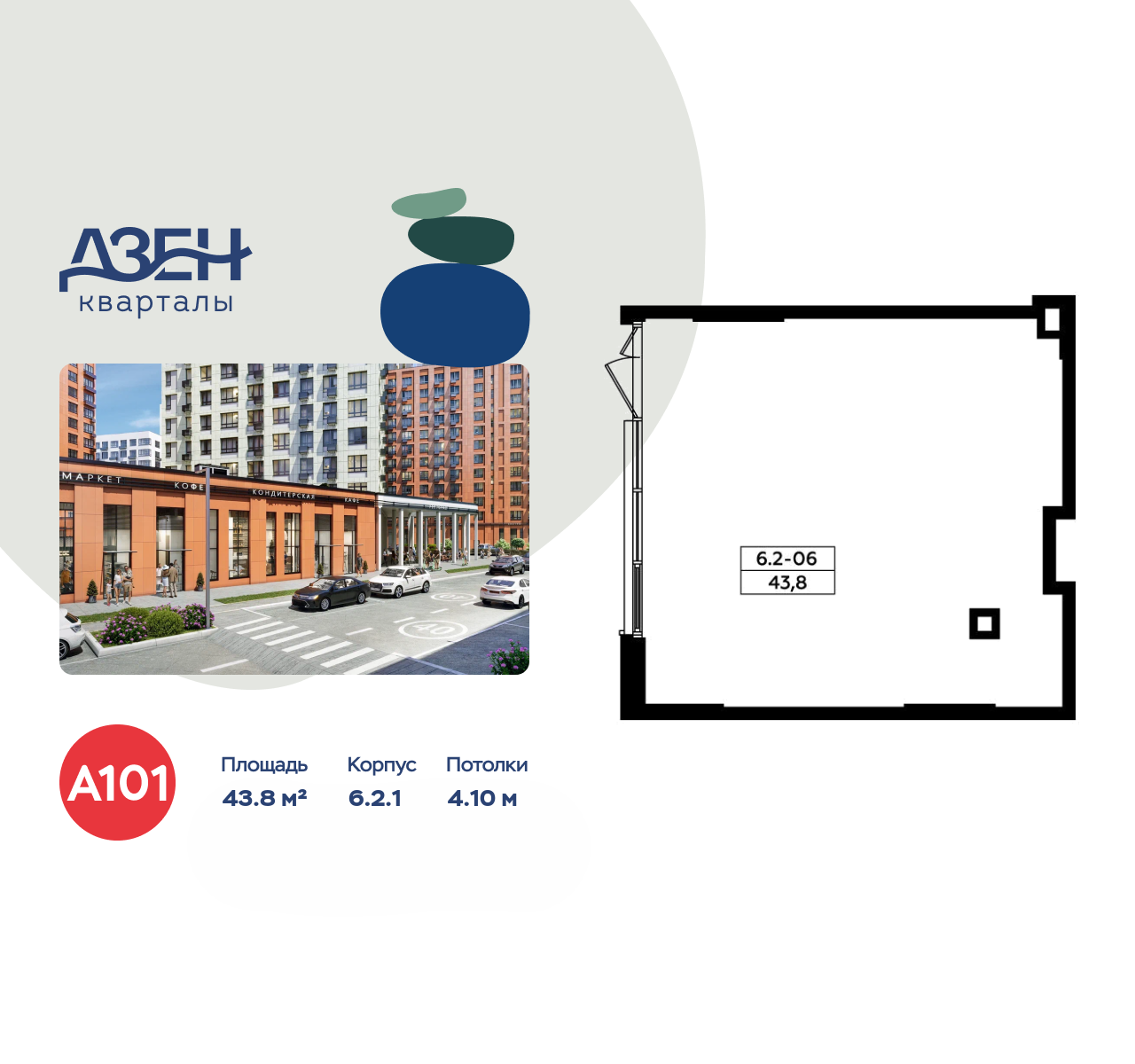 Сдается помещение площадью 43.80. на 1-м этаже ЖК «Дзен-кварталы».