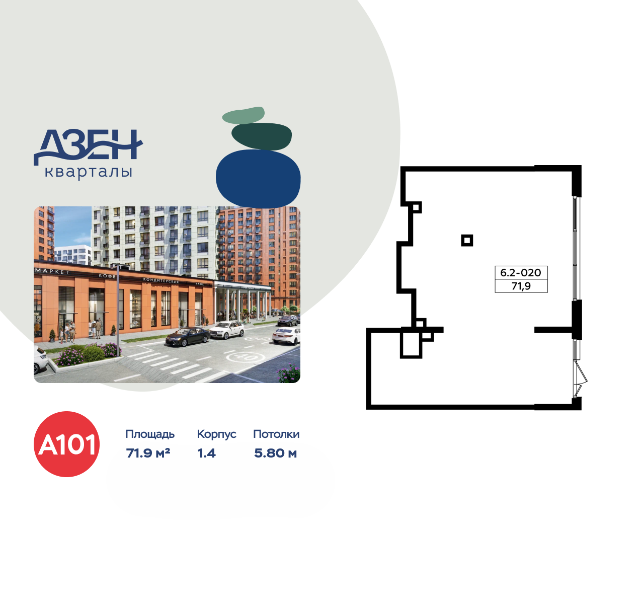 Сдается помещение площадью 71.90. на 1-м этаже ЖК «Дзен-кварталы».