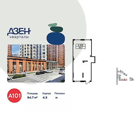 Сдается помещение площадью 94.70. на 1-м этаже ЖК «Дзен-кварталы».