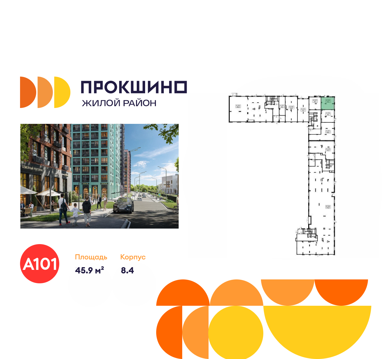 Здесь активная молодая аудитория: в перспективе численность населения в радиусе 5 км превысит 200 тыс. человек. Быстрый цикл заселения за счёт большого количества квартир с отделкой. Возможна покупка и объединение нескольких лотов на 1-й линии.