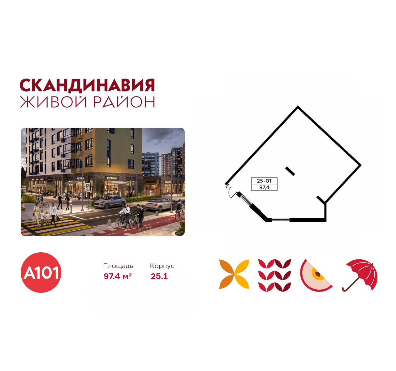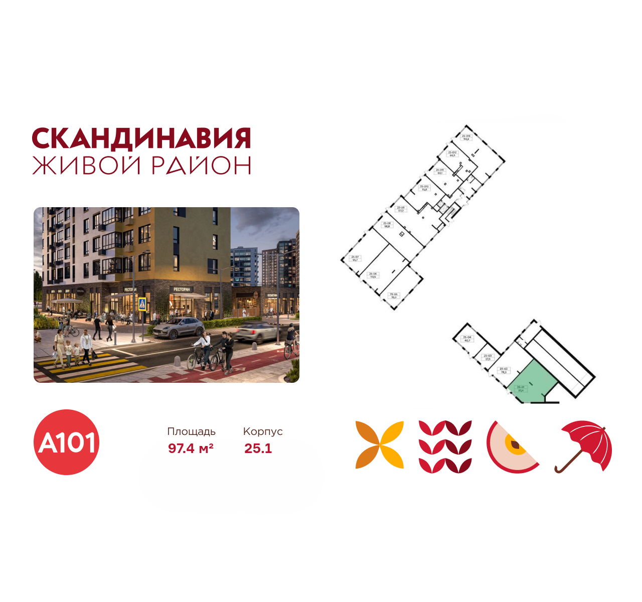 Всё это обеспечивает высокий пешеходный трафик и востребованность коммерческих объектов. Любой объект инфраструктуры «Скандинавии» находится в шаговой доступности. Многие жители не покидают локацию в течение дня, пользуясь услугами и делая покупки.