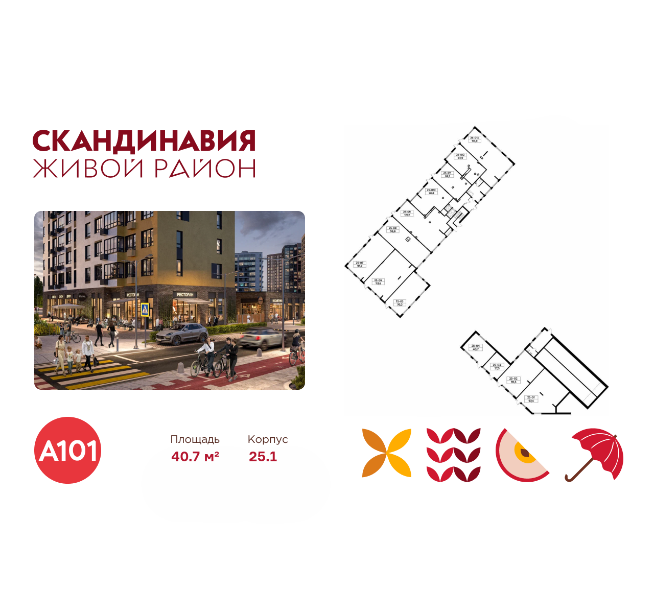 Всё это обеспечивает высокий пешеходный трафик и востребованность коммерческих объектов. Любой объект инфраструктуры «Скандинавии» находится в шаговой доступности. Многие жители не покидают локацию в течение дня, пользуясь услугами и делая покупки.
