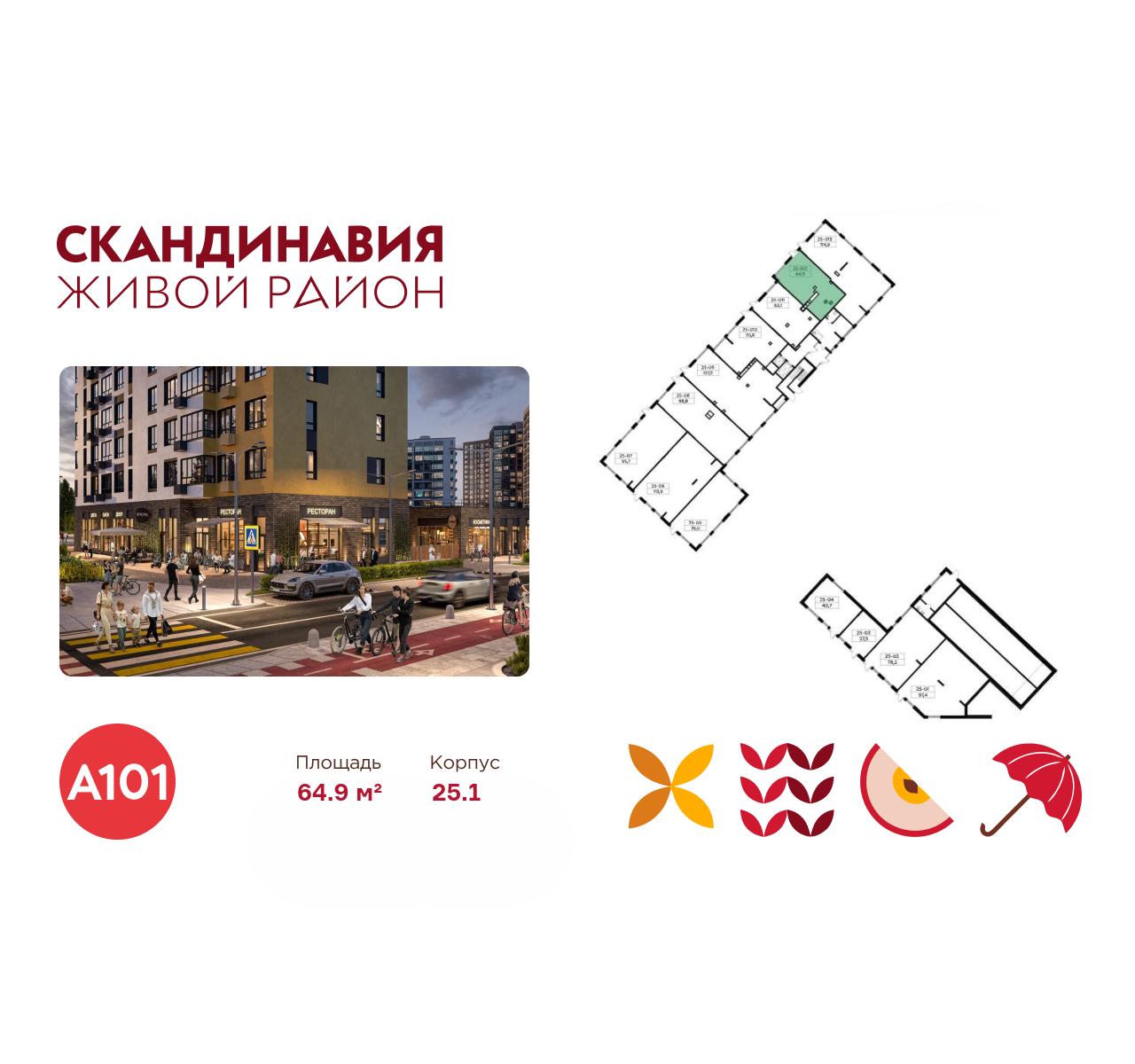 Всё это обеспечивает высокий пешеходный трафик и востребованность коммерческих объектов. Любой объект инфраструктуры «Скандинавии» находится в шаговой доступности. Многие жители не покидают локацию в течение дня, пользуясь услугами и делая покупки.