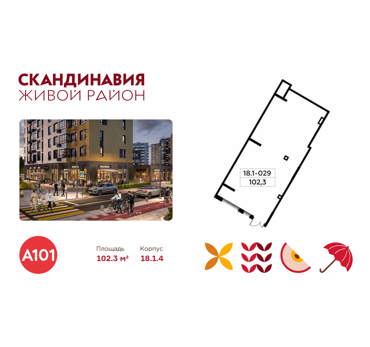 Всё это обеспечивает высокий пешеходный трафик и востребованность коммерческих объектов. Любой объект инфраструктуры «Скандинавии» находится в шаговой доступности. Многие жители не покидают локацию в течение дня, пользуясь услугами и делая покупки.