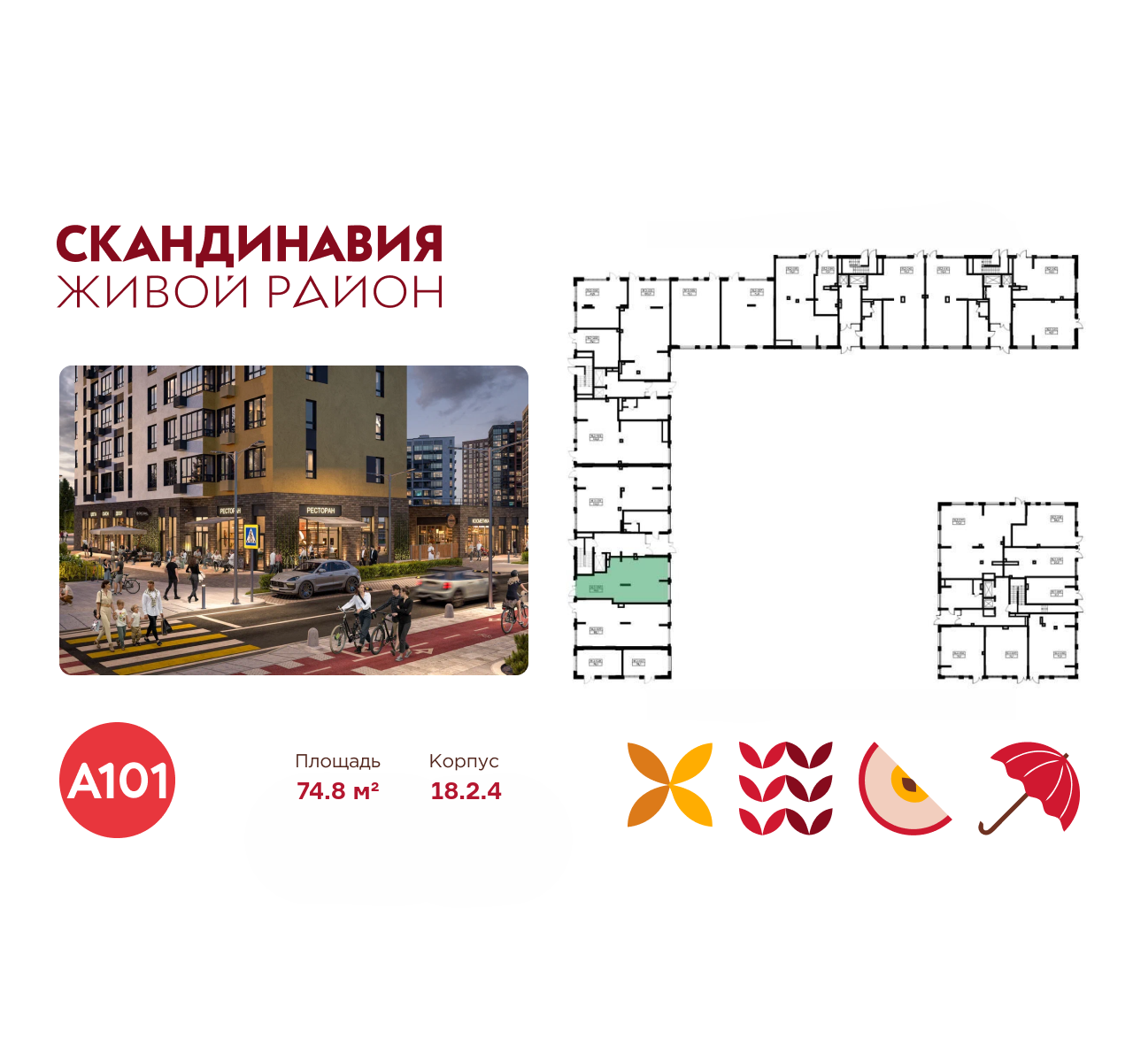 Всё это обеспечивает высокий пешеходный трафик и востребованность коммерческих объектов. Любой объект инфраструктуры «Скандинавии» находится в шаговой доступности. Многие жители не покидают локацию в течение дня, пользуясь услугами и делая покупки.