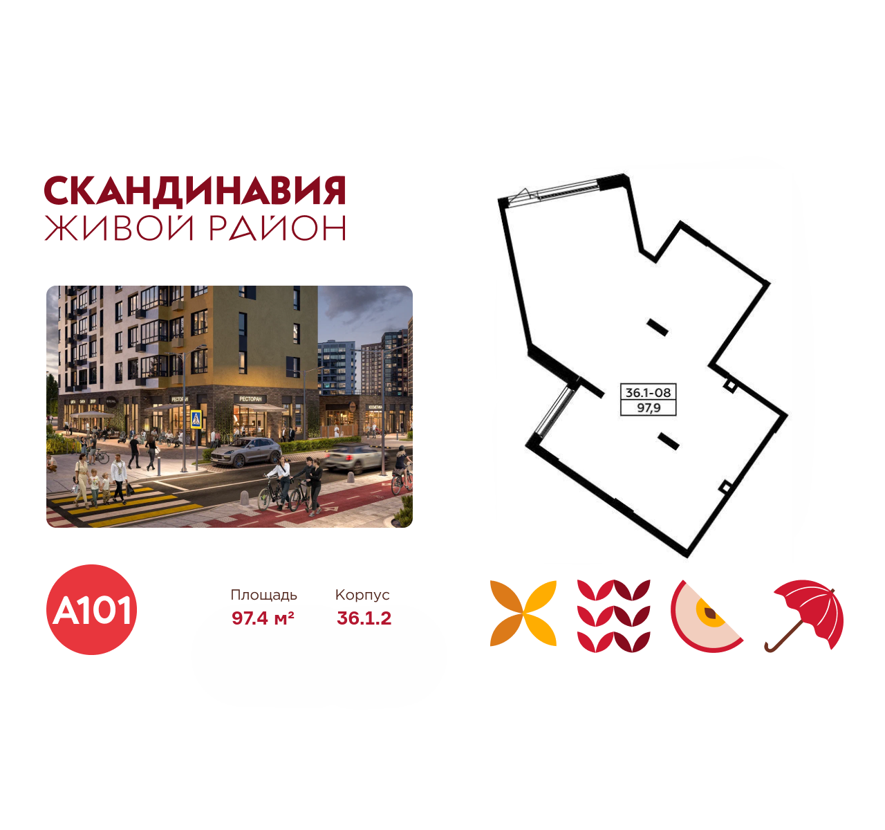 Всё это обеспечивает высокий пешеходный трафик и востребованность коммерческих объектов. Любой объект инфраструктуры «Скандинавии» находится в шаговой доступности. Многие жители не покидают локацию в течение дня, пользуясь услугами и делая покупки.