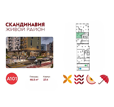 Всё это обеспечивает высокий пешеходный трафик и востребованность коммерческих объектов. Любой объект инфраструктуры «Скандинавии» находится в шаговой доступности. Многие жители не покидают локацию в течение дня, пользуясь услугами и делая покупки.