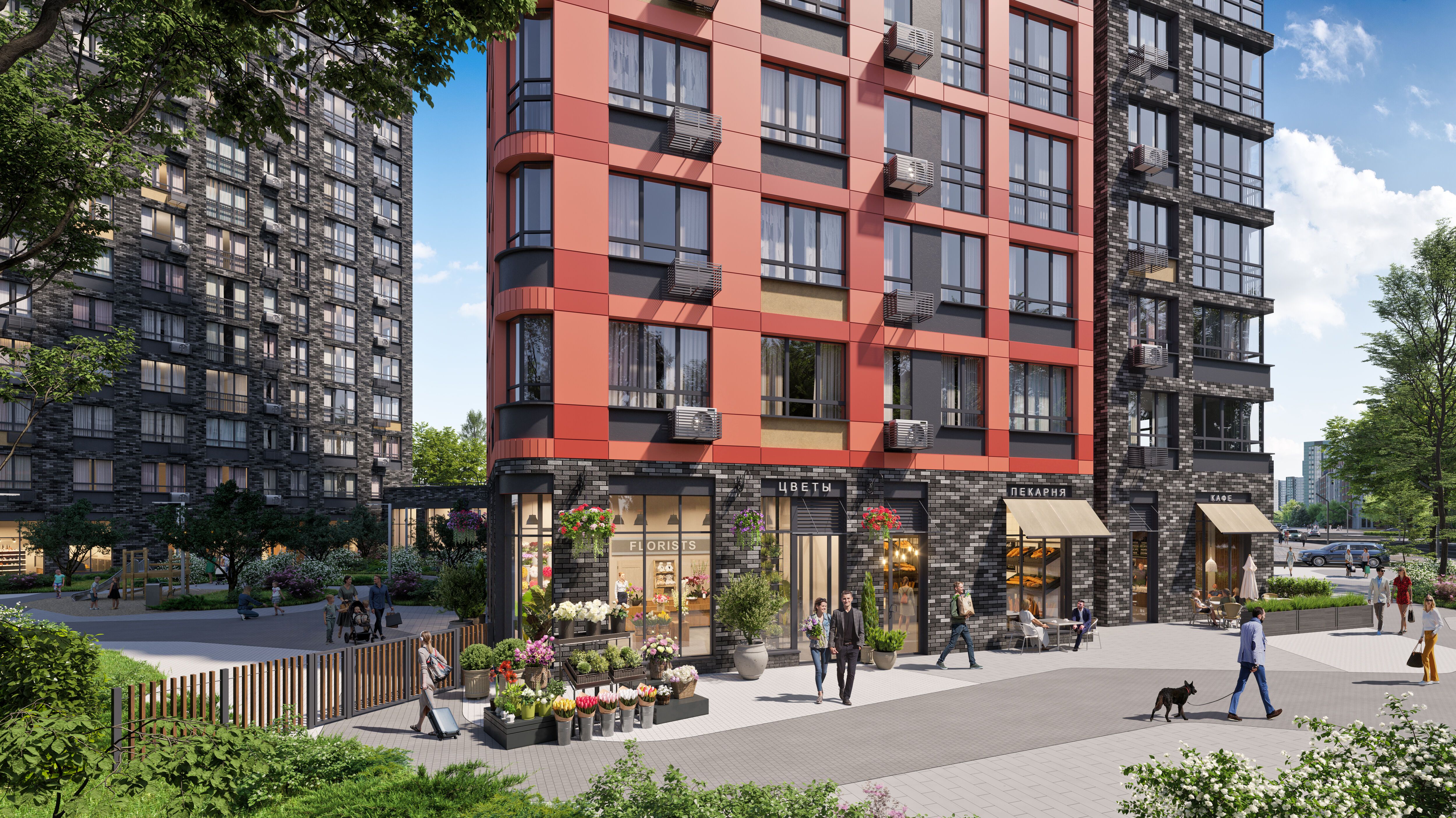 Узнаваемый и атмосферный жилой район с активным населением и развитой коммерческой инфраструктурой реализуется в соответствии с концепцией «15-минутный город». Здесь уже работают школы и детские сады, новые образовательные центры (школа и детский сад),