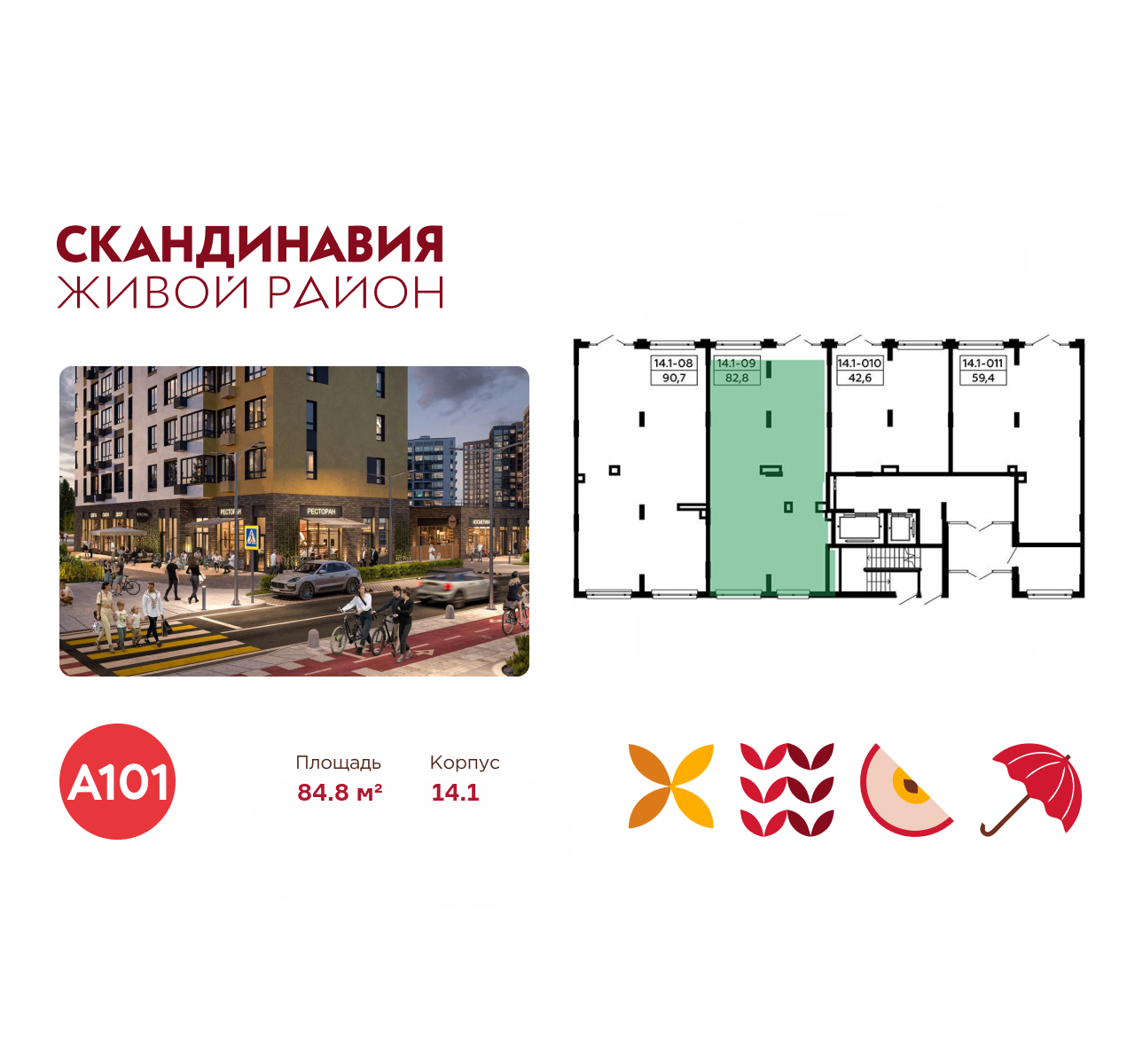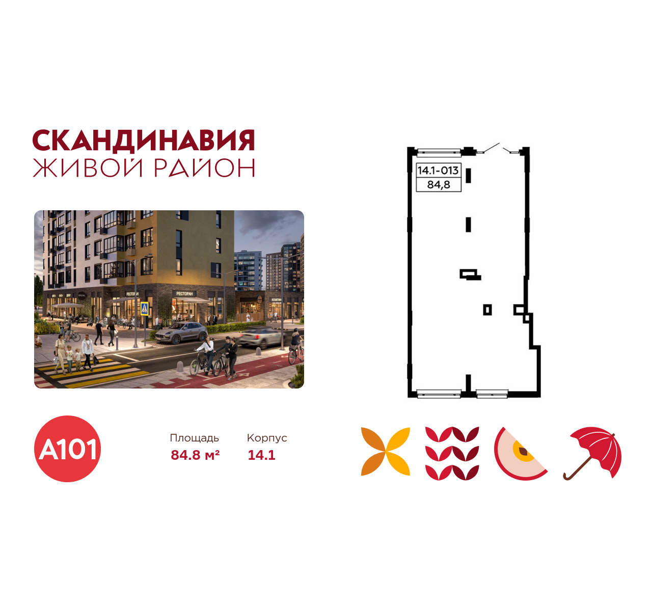 Всё это обеспечивает высокий пешеходный трафик и востребованность коммерческих объектов. Любой объект инфраструктуры «Скандинавии» находится в шаговой доступности. Многие жители не покидают локацию в течение дня, пользуясь услугами и делая покупки.