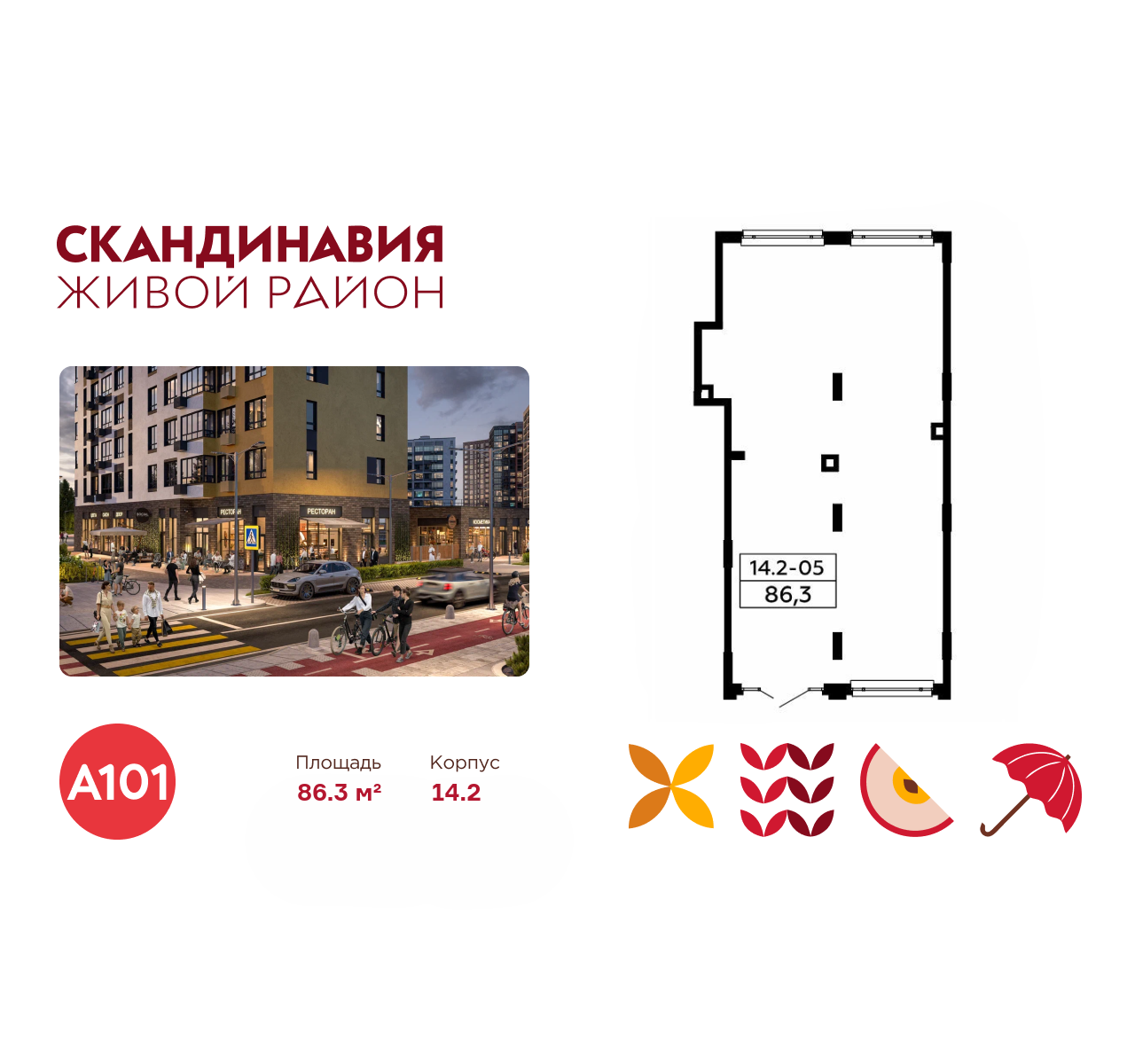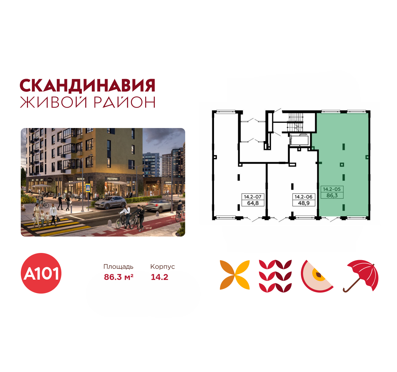 Всё это обеспечивает высокий пешеходный трафик и востребованность коммерческих объектов. Любой объект инфраструктуры «Скандинавии» находится в шаговой доступности. Многие жители не покидают локацию в течение дня, пользуясь услугами и делая покупки.