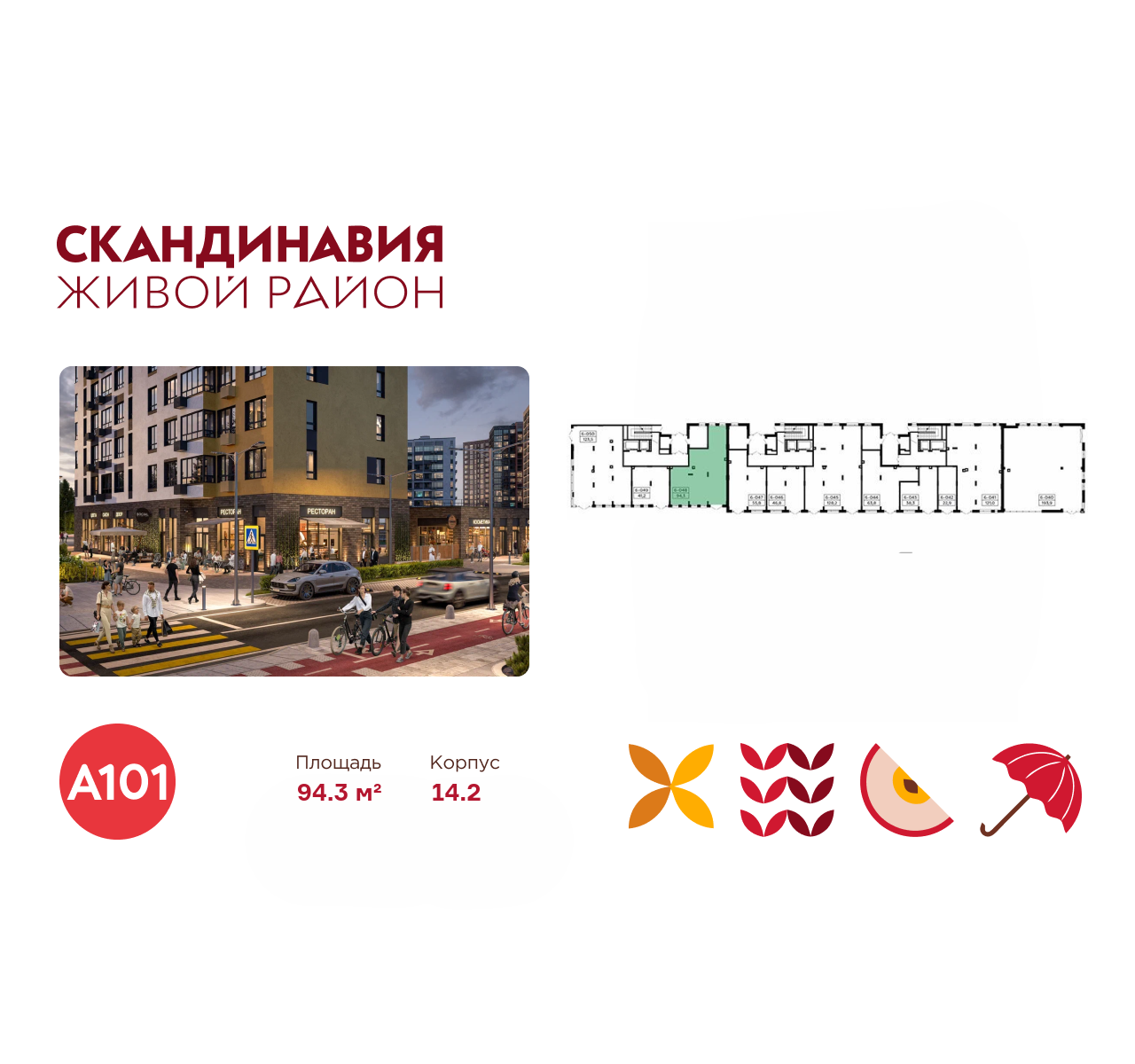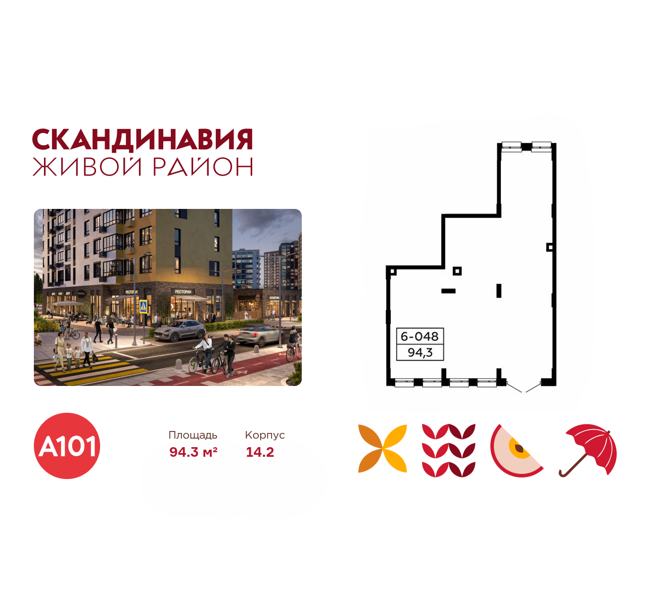 Всё это обеспечивает высокий пешеходный трафик и востребованность коммерческих объектов. Любой объект инфраструктуры «Скандинавии» находится в шаговой доступности. Многие жители не покидают локацию в течение дня, пользуясь услугами и делая покупки.