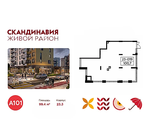 Всё это обеспечивает высокий пешеходный трафик и востребованность коммерческих объектов. Любой объект инфраструктуры «Скандинавии» находится в шаговой доступности. Многие жители не покидают локацию в течение дня, пользуясь услугами и делая покупки.