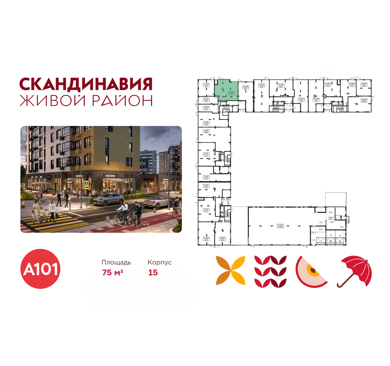 Всё это обеспечивает высокий пешеходный трафик и востребованность коммерческих объектов. Любой объект инфраструктуры «Скандинавии» находится в шаговой доступности. Многие жители не покидают локацию в течение дня, пользуясь услугами и делая покупки.