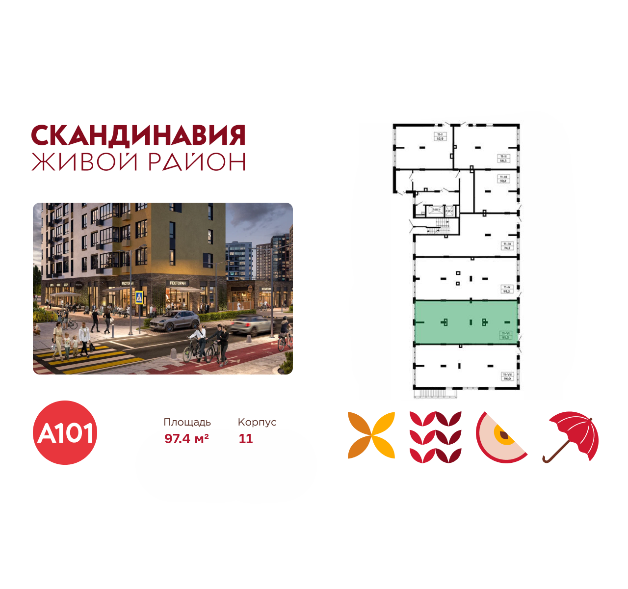 Узнаваемый и атмосферный жилой район с активным населением и развитой коммерческой инфраструктурой реализуется в соответствии с концепцией «15-минутный город». Здесь уже работают школы и детские сады, новые образовательные центры (школа и детский сад),